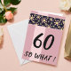 60 So What Funny Pink Floral Birthday Card for Her. The card is pink and has a stripe of the pink and yellow flower pattern on a black background. It comes with a funny and motivational quote 60 so what, and is perfect for a person with a sense of humor. Change the age number and customize the message and names inside or delete it.