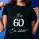 60 so what Funny Quote 60th Birthday T-Shirt for a woman. The design features a positive quote 60 so what in modern typography. The t-shirt is great for a woman celebrating her 60th birthday and has a sense of humor.