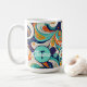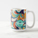This 60s inspired swirls abstract design brings a modern twist to the dynamic hippie-era style with it's playful shapes and bold palette of turquoise, golden yellow, navy blue. The colorful composition captures the essence of modern psychedelic patterns. This coffee mug design can be easily personalized to suit your unique style using the supplied template. Try out Zazzle's handy transfer option or search ID1069 to see additional patterns and products in this design set. Note: pattern adapted from generative content.