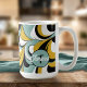 This 60s inspired swirls abstract design brings a modern twist to the dynamic hippie-era style with it's playful shapes and striking color palette of powder blue, saffron gold, white and black. The colorful composition captures the essence of modern psychedelic patterns. This coffee mug design can be easily personalized to suit your unique style using the supplied template. Try out Zazzle's handy transfer option or search ID1069 to see additional patterns and products in this design set. Note: pattern adapted from generative content.