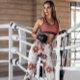 The dainty interlinked rosette design at the waist is truly unique. The poly-spandex makes for a nice fit and available in sizes 0-16. The printing is vibrant and eye-catching.