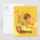 This fun postcard features a retro image of a girl, listening to records. The background color can be customized as needed.