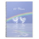 Notebook with my design of two diamond hearts floating on the water under a rainbow. Customizable text says "60 Years".