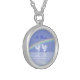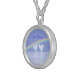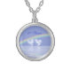 Necklace with my artwork of two diamond hearts floating on the water under a rainbow with customizable text that says "60 Years".