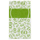 This over-the-hill numeric design is a green and white random number pattern with a green milestone number 60 repeated in varied sizes and angles over a white background. There is a printed banner and a gift tag with text templates so you can easily personalize any or all of the text.