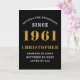 60th Birthday 1961 Black Gold Men's Personalized Card