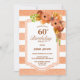60th Birthday Apricot Striped Floral Party Invitation