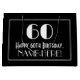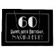 This vintage look 1920s-1930s style inspired birthday themed giftbag design features a large art deco look inspired number "60", the message "Happy 60th Birthday,", a customizable name, and a border pattern consisting of thin lines. The background is colored black. A gift bag like this might be used when giving a gift or present in honor of somebody’s 60th birthday. [~Z0000496]