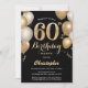 60th Birthday Black and Gold Balloons Confetti Invitation