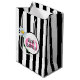White daisy on black and white striped pattern with age number for 60th birthday.