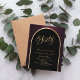 An elegant 60th birthday invitation. A black and burgundy background with a golden arch on the front.