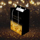 Elegant, classic, glamorous and feminine style party gift bag for a 60 year old woman. A gold colored ribbon and bow. Black background. Golden text: Happy 60th Birthday!