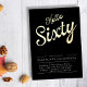 Make a statement and make it loud with this fun and vibrant black and gold foil 60th birthday invitation. Celebrate a special milestone with this unique design featuring the words 'Hello Sixty' set against a black backdrop. Ideal for a glamorous and luxurious affair, these stunning invites are sure to impress all your guests. Don't miss out on this remarkable opportunity to make your special day unforgettable!