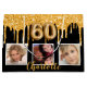 A black background with faux gold glitter drips, paint dripping look. Personalize and add 3 photos and a name. Number 60 is written with a balloon style font. Perfect as a party favor bag or as a gift bag.