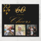 A bottle label for a glamorous 60th birthday party. Personalize and add 3 of your own photos, a name, age 60 and a date. Date of birth or the date of the party. Golden colored letters. The word: Cheers, in faux gold written with a trendy hand lettered style script. Elegant, classic chic black background color, decorated with faux gold party streamers.