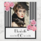For an elegant and fun 60th birthday party. Classic slim black and white vertical stripes as background. With girly and feminine flowers, pink roses and peonies as decoration.