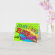 Add, change the age on the cover of this Happy Big 60th Blowout, birthday greeting card. Bright and colorful design with a turquoise plate, chocolate birthday cake with candles, and words being blown off the cover of the card. Art, image, and verse copyright © Shoaff Ballanger Studios.