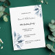 An elegant and simple 60th birthday party invite. On front a chic white background decorated with blue botanical branches, florals. Templates for a name, age 60 and your party details.