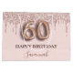 Elegant, classic, glamorous and girly for a 60th birthday party. A chic blush pink background. Decorated with rose gold, pink drips, paint dripping look. Personalize and add a name. With the text: Happy Birthday. The name is written with a modern dark rose colored hand lettered style script. Number 60 is written with a balloon style font.