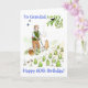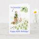 A 60th Birthday card for a grandfather with a man enjoying listening to the birdsong whilst tending the vegetable patch. The cat looks on and butterflies have come out in the sunshine, from a watercolour painting by Judy Adamson. (Other ages and family members available on request.)