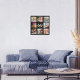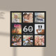 A unique 60th birthday gift or keepsake, celebrating her life with a collage of 8 of your photos. Add images of her family, friends, pets, hobbies or dream travel destination. Personalize and add a name, age 60 and a date. White and gray colored letters. A chic black background. This canvas is also available in our store with white or rose gold colored background.
