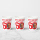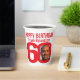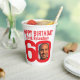 Personalize these bright red and white 60th birthday party paper cups with your own birthday name and two photograph in the 0 of 60. Fun text and personalized photo design. Ideal for using at a sixtieth birthday party to show a photo of your birthday boy or girl now and one from their past. Other matching items are available. © Original graphic art and design by www.mylittleeden.com