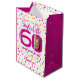 Bright colorful confetti random dots birthday 60th and sensational party favor bags. In bright deep pink, coral, hot pink, red, yellow and golden yellow. Add your own birthday girl's photo in the centre of the 0 in 60 and customize with your own sixtieth birthday date and party congratulations words and thank you. Currently reads Happy Birthday Michelle 60 ...and sensational! Thank you. Other matching items and milestone birthday years available. Original design by www.mylittleeden.com on zazzle.