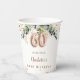 For an elegant 60th birthday party. A white background. On the front and the back: Personalize and add a name and a date. Decorated with eucalyptus greenery and faux glitter dust. Nr 60 is written with a balloon style font.