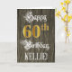 The front of this ornate and fancy birthday themed greeting card design features the message “Happy 60th Birthday,”, and a personalized recipient name. Some of the message is in elaborate script-style text, the large number “60th” features a faux/imitation gold-inspired look pattern, and the background has a faux/imitation woodgrain-inspired pattern. The inside has a personalized birthday greeting message, or could perhaps be cleared and left blank if a message is to be written by hand instead. A luxurious, personalized birthday greeting card like this might be a respectable way to deliver some birthday wishes to somebody who is celebrating their sixtieth birthday. [~Z0000561]