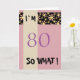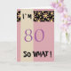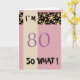 A great greeting card for someone, especially for her (because of the colour scheme black - pink) celebrating 80th birthday. The card is pink and has a stripe of pink and yellow flower pattern on a black background.
