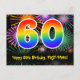 60th Birthday – Fun Fireworks Pattern + Rainbow 60 Postcard