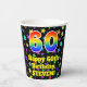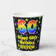 This exciting and fun birthday paper cup design features a large number “60” with a rainbow spectrum gradient inspired pattern, along with the message “Happy 60th Birthday,”, and a customizable name. The background features an exciting and colorful pattern inspired by a field of stars. Colorful, vibrant paper cups like this might be fun to have at a birthday celebration/party being held to celebrate somebody’s sixtieth birthday. [~Z0000540]