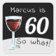 60th Birthday Funny Inspirational Red Wine Man Square Sticker. Modern red wine sticker for a man celebrating the sixtieth birthday - red wine in glass and black background. Personalizable it with the name, you can also change the age number. It comes with a funny and inspirational quote 60 so what and is perfect for a man with a sense of humor.