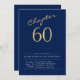 60th Birthday Gold Modern Script Blue Invitation