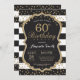 60th Birthday Invitation. Black and Gold Glitter Invitation