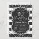 60th Birthday Invitation. Black and Silver Glitter Invitation