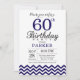 60th Birthday Invitation with Navy Blue Chevron. Black and White. Adult Birthday. Man or Women Bday Invite. For further customization, please click the "Customize it" button and use our design tool to modify this template.