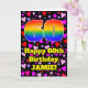 The front of this joyful and fun birthday-themed greeting card design features a large number “60” having a rainbow spectrum gradient inspired pattern. It also features the message “Happy 60th Birthday,”, and a customizable name. The background of the front features a pattern of purple, pink, and red heart shapes. The inside has a customized birthday greeting message, or could perhaps be cleared and left blank if a message is to be written by hand instead. A cheerful, editable birthday greeting card like this might be a fun way to send some birthday wishes to somebody who is celebrating their sixtieth birthday. [~Z0000551]
