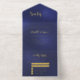A navy blue background. The blue color is uneven. Personalize and add name, party details, RSVP date, return address and name. Sixty with a heart. Gold foil inside.