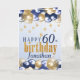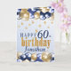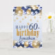 A stylish Happy birthday 60th age card. This beautiful card features gold and navy balloons. Can be customize for any age and personalized by amending the name and the message inside which currently reads " Happy Birthday, Wishing you a fun-filled fabulous 60th!."