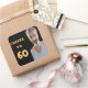 A trendy 60th birthday party sticker. With the text: Cheers to 60 on front written with faux gold balloon letters. Black background. Template for your photo.