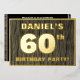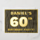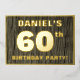 The front of this bold sixtieth birthday party foil invitation card features a customizable name, a large number “60th”, the message “BIRTHDAY PARTY!”, and a border, all in foil. The background of the front features a rustic, yet sophisticated, faux wood grain appearance inspired pattern. The back features personalized details about the event, such as the date, time, location/venue, and any other relevant information. Personalized invitations like these might be used to invite guests to a birthday party being held in celebration of somebody’s 60th birthday. [~Z0000598]