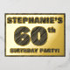 The front of this bold sixtieth birthday party foil invitation card features a personalized name, a large number “60th”, the message “BIRTHDAY PARTY!”, and a border, all featuring a rustic, yet sophisticated, faux wood grain appearance inspired pattern. The back features personalized details about the event, such as the date, time, location/venue, and any other important information. Customizable invitations like these might be used to invite guests/attendees to a birthday party being held to honor somebody’s 60th birthday. [~Z0000595]