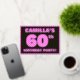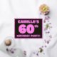 The front of this bold and fun sixtieth birthday party/celebration foil announcement card features a custom name, a large number “60th”, the message “BIRTHDAY PARTY!”, and a border, all featuring a girly light pink and dark pink striped pattern. The back features personalized details about the event, such as the date, time, venue, and any other information that may be useful. Editable invitations like these might be used to invite guests/attendees to a birthday gathering/party being held to celebrate somebody’s 60th birthday. [~Z0000597]