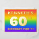 The front of this vibrant and eye-catching sixtieth birthday celebration foil invitation card design features a custom name, a large number “60th”, the message “BIRTHDAY PARTY!”, and a border. The background of the front has an exciting, colorful, rainbow spectrum inspired gradient pattern. The back features personalized details about the event, such as the date, time, place/venue, and any other useful information. Customizable invitations like these might be a fun way to invite guests/attendees to a birthday party being held to celebrate somebody’s 60th birthday. [~Z0000599]