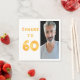 A napkin for a 60th birthday party. Template for your photo. White background and the text: Cheers to 60. The text is written with a trendy faux gold balloon script.