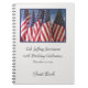 This 60th Birthday Party Spiral Notebook Guest Book is decorated with our fine art photograph of several American flags waving with a cloudy sky in the background. Very patriotic! Easy to customize, just change or delete example name. Original photograph by Marcia Socolik. All Rights Reserved © 2014 Alan & Marcia Socolik.