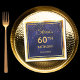 60th birthday party on midnight blue gold confetti napkins
