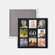 A magnet for a 60th birthday party for a guy, celebrating his life with a collage of 8 of your own photos. Templates for the age 60 and a date. Date of birth or the date of the party. White colored letters. Black background. Perfect as a party favor, keepsake or as a save the date reminder for your guests.