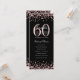 60th Birthday Party Program Rose Gold Menu Black